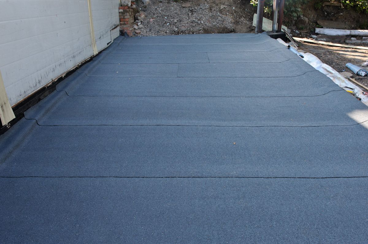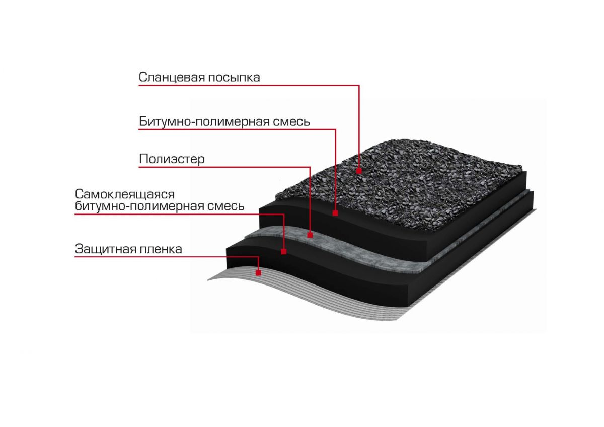 Самоклеящийся материал на прочной полиэфирной основе с крупнозернистой сланцевой посыпкой для гидроизоляции плоских кровель.