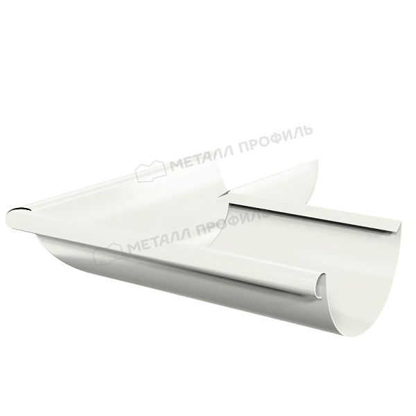Металлическая водосточная система Угол желоба наружный D125х90 градусов GS (ВПЭД-03-9010-0.6) сделана из оцинкованной стали. В качестве защитного барьера от механических воздействий, влаги, ультрафиолета использовано покрытие Полиэстер. Компания «Металл Профиль» изготавливает водосток Угол желоба наружный D125х90 градусов GS (ВПЭД-03-9010-0.6) в оптимальной толщине 0.6 мм (включая полимерное покрытие и цинковый слой). Такая система подходит как для частного домостроения, так и для промышленных объектов. Она долговечна, экономична и эффективно отводит воду с кровли.